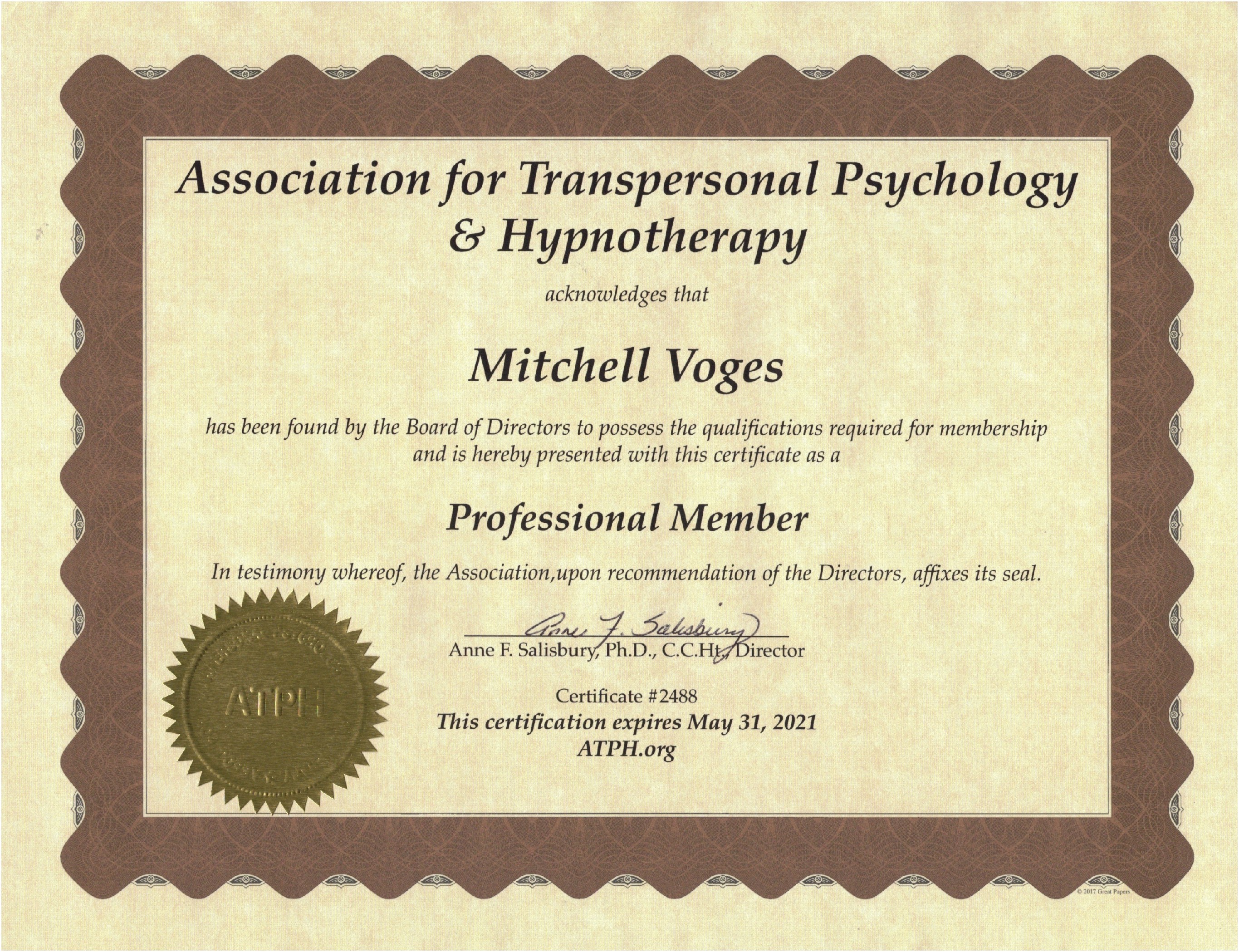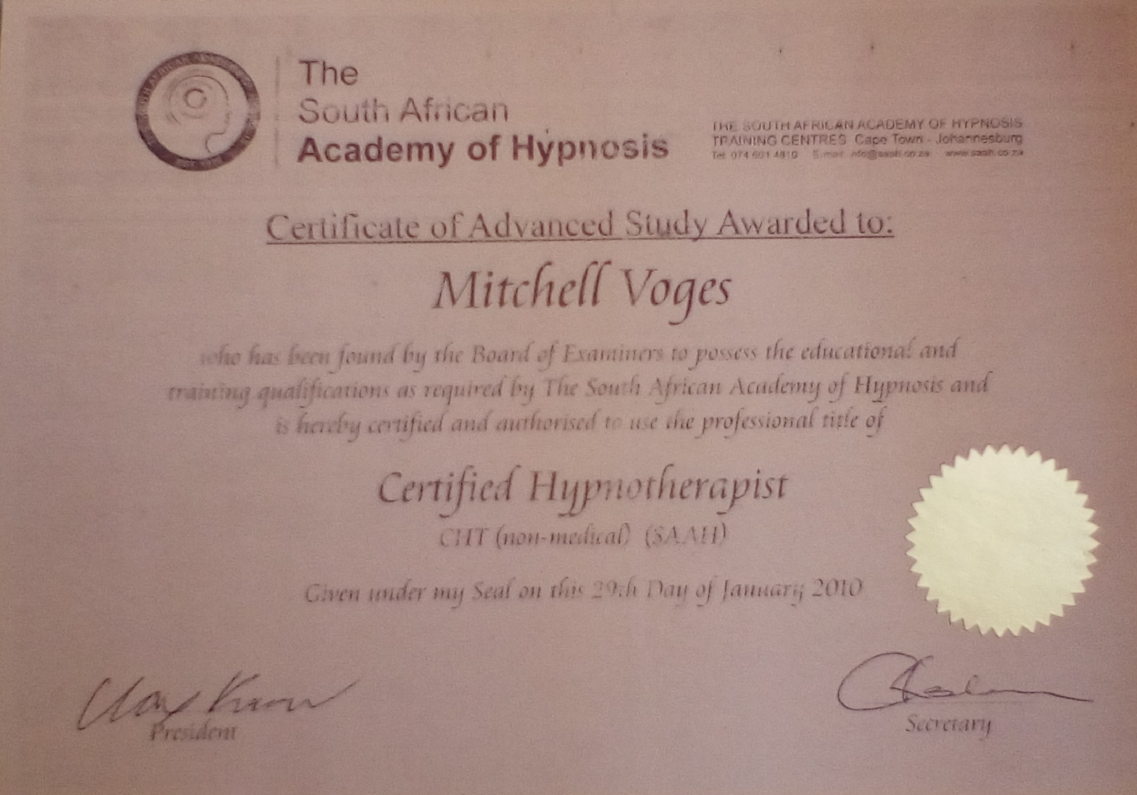 As a Certified Hypnotherapist (C.Ht) Mitchell has an in depth knowledge of the dynamics of the human psyche, a caring and compassionate manner, an understanding of the phenomena surrounding hypnosis, and is able to assist clients who are prepared to accept help with the change they seek.